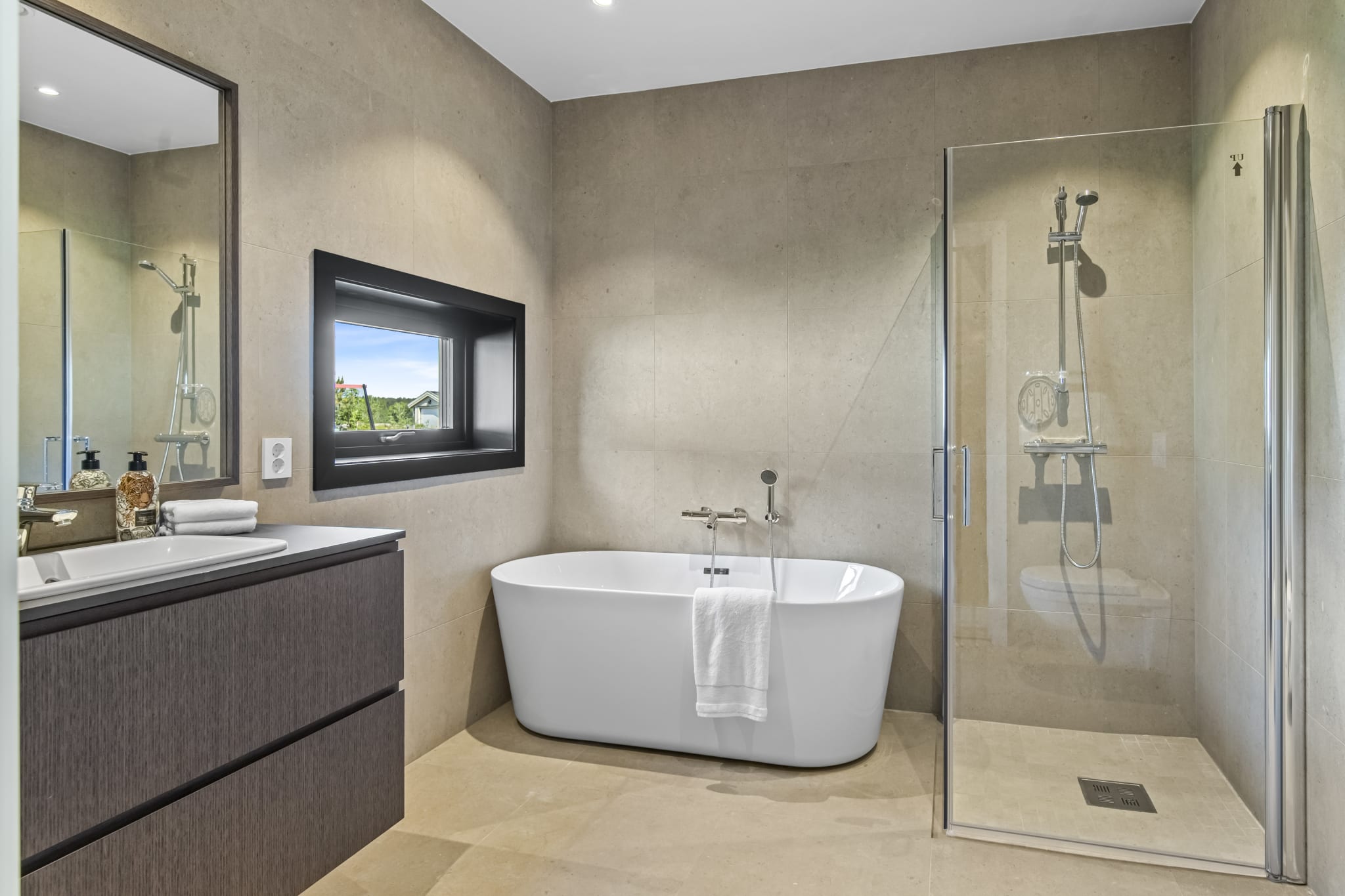 Egen Mastersuite med hovedsoverom, bad og walk-in closet.