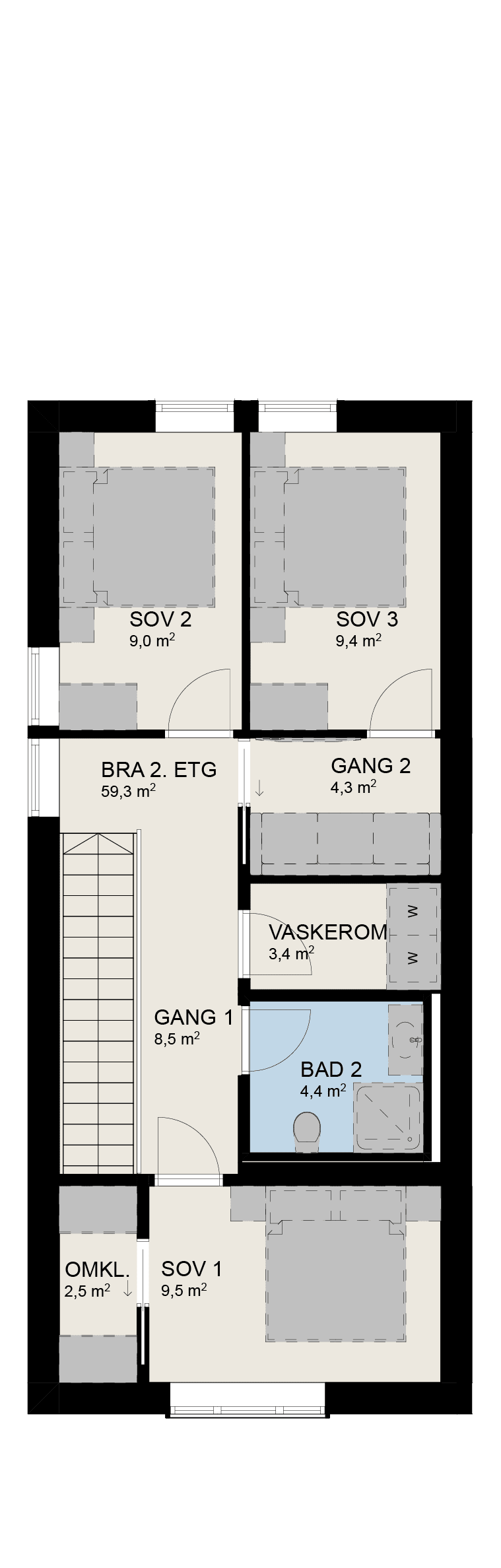 4 boliger på 118 kvm med 3 soverom og vaskerom.