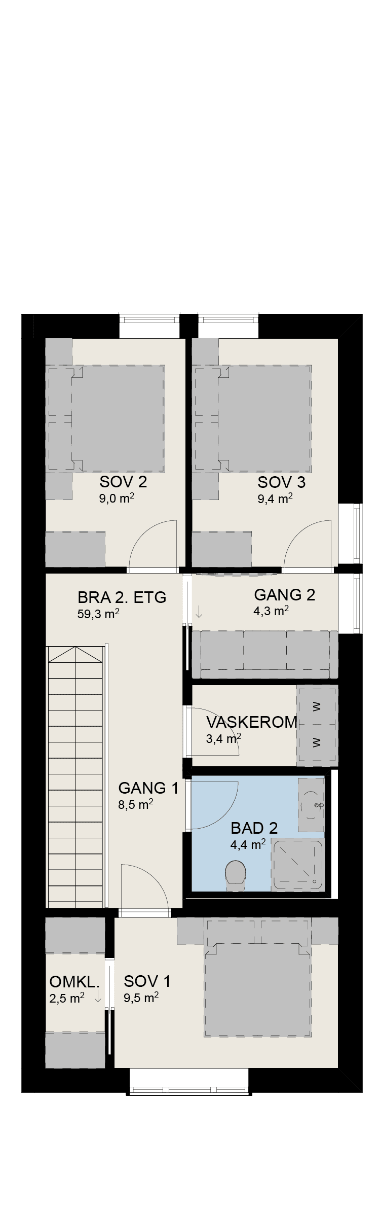 4 boliger på 118 kvm med 3 soverom og vaskerom.