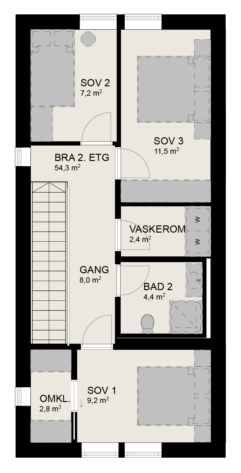 De 3 minste boligene i prosjektet på 108 kvm.