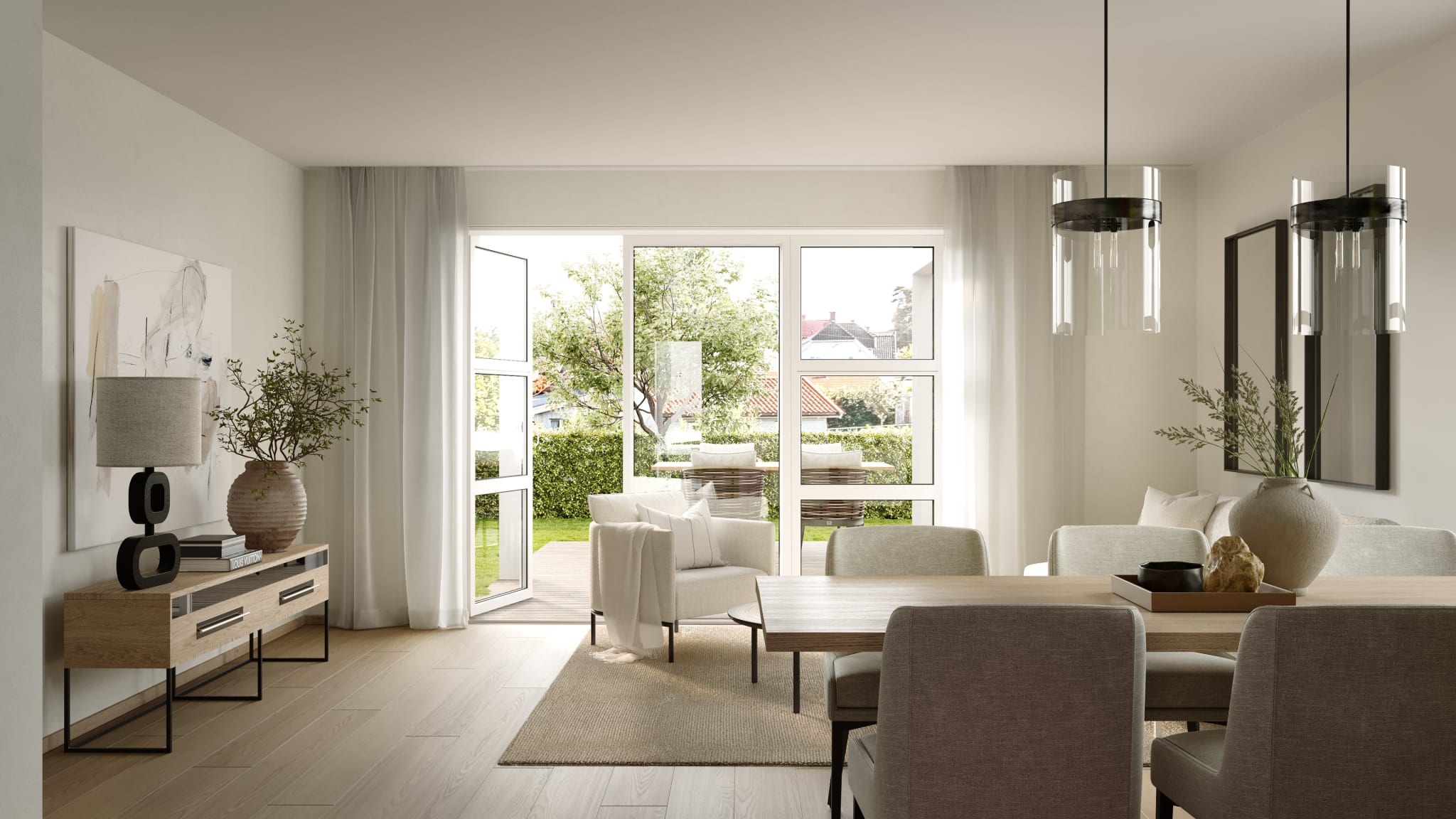 De har romslige terrasser, 3 soverom og 1 garasjeplass i parkeringskjeller.