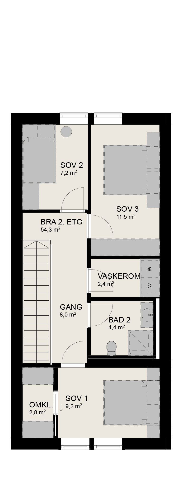 De 3 minste boligene i prosjektet på 108 kvm.