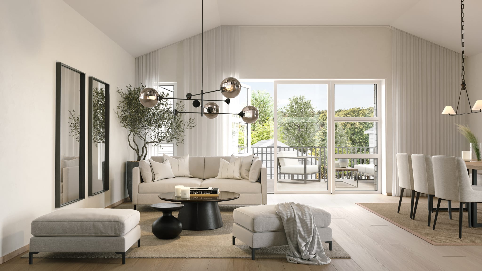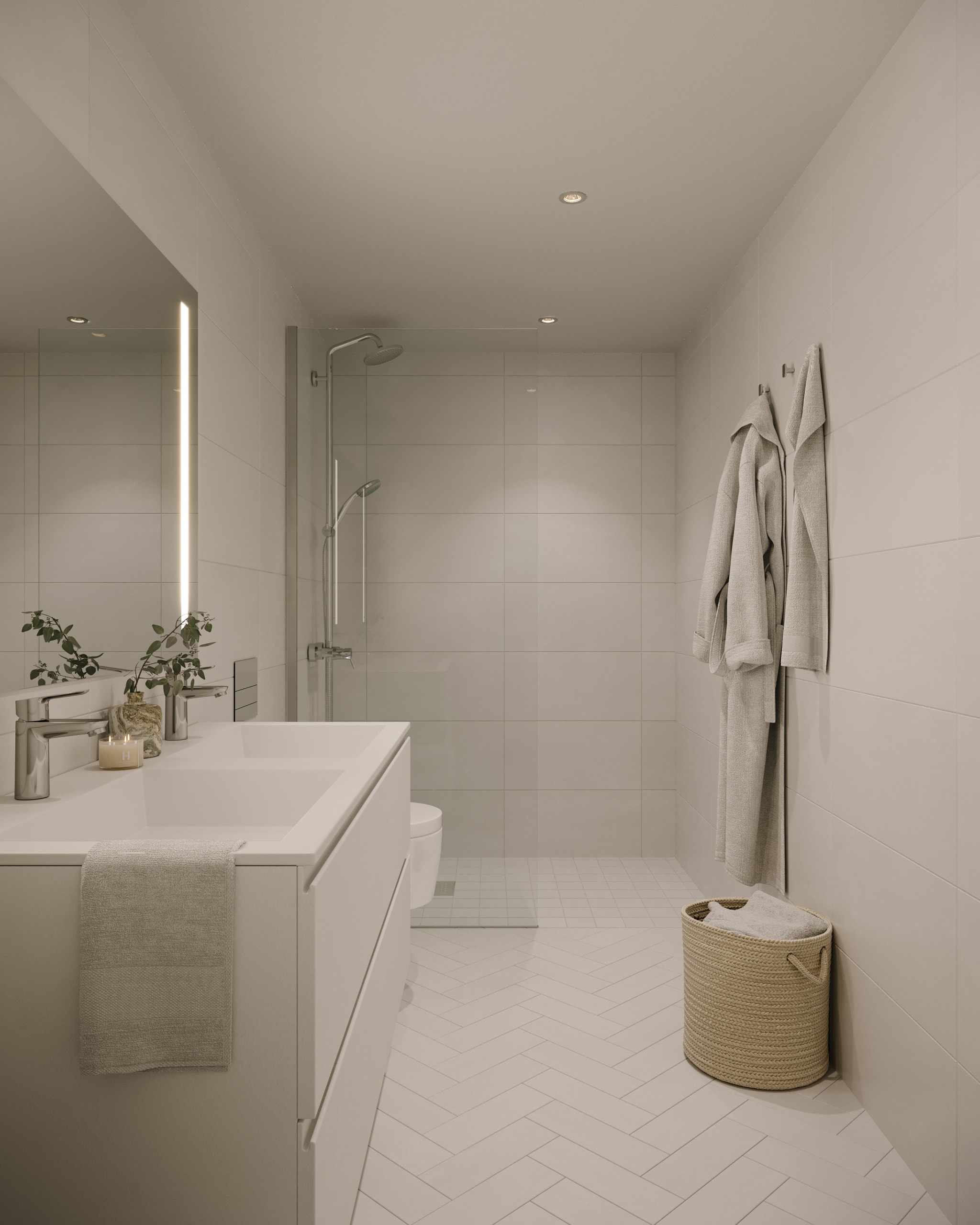 De 4 største boligene i prosjektet på 151 kvm ligger i hus 5. Her får man 2 garasjeplasser i parkeringskjeller, balkong, terrasse, og ekstra god takhøyde i 2. etasje med opp til 3,1 meter.